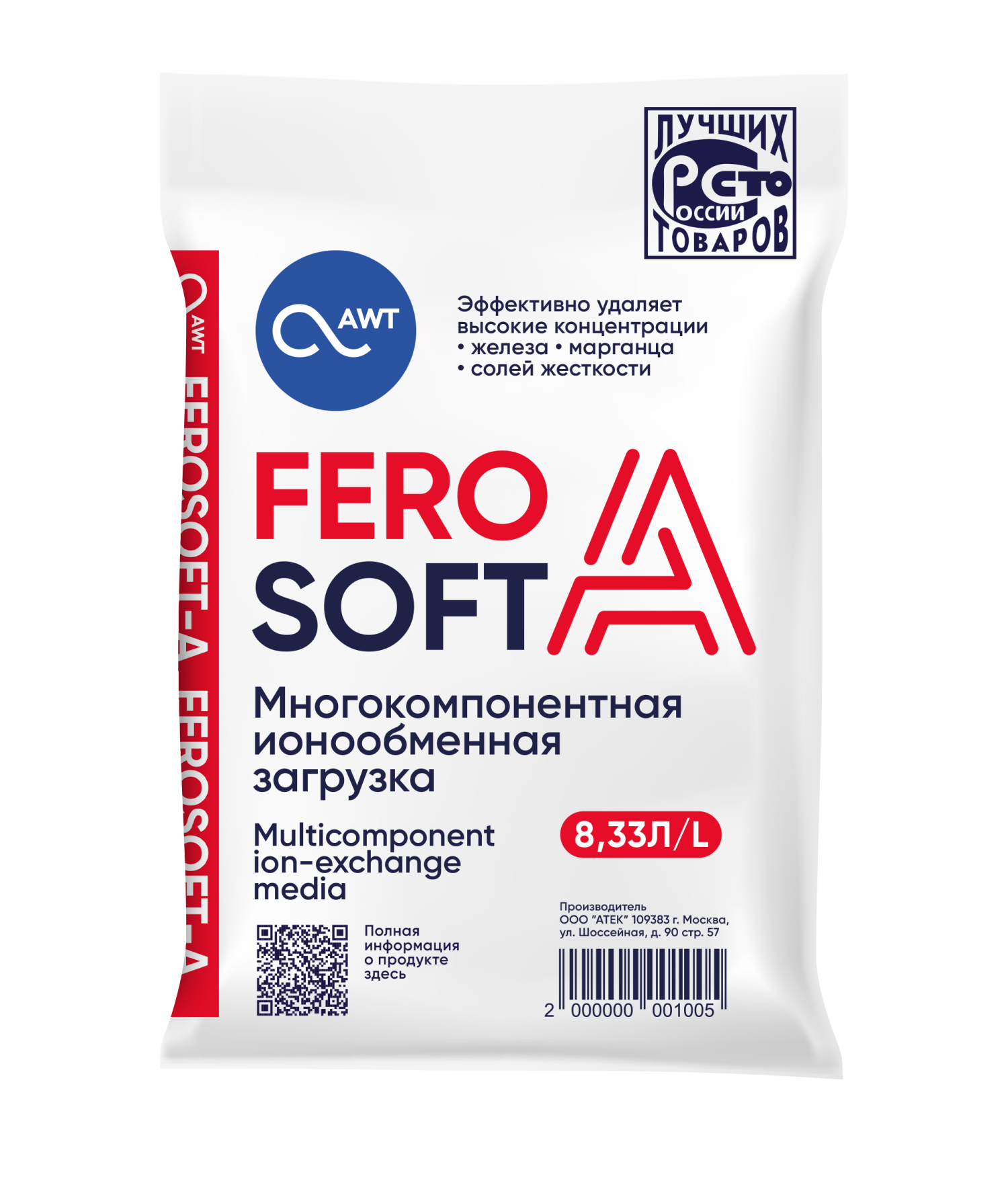 FeroSoft-A — поликомпонентный фильтрующий материал на основе смеси ионообменных смол (катионитов и анионитов) в Na+ и Cl-форме с добавлением полимеров. Используются для комплексного удаления из воды ионов жесткости, железа, марганца, снижения концентрации органических соединений. Работа материала основана на принципах ионного обмена. Рекомендации к применению Применяется в напорных засыпных фильтрах для очистки воды хозяйственно-бытового водоснабжения. Очищает от ионов кальция, магния, железа, марганца и перманганатной окисляемости в одну ступень при соблюдении требований, описанных в таблице паспорта. Для регенерации необходимо использовать раствор хлорида натрия. Срок службы при рекомендуемых условиях эксплуатации: 5 лет Информация для крупных оптовых компаний: на паллете 72 мешка, габариты паллета 1,2*0,8*1,4 м.